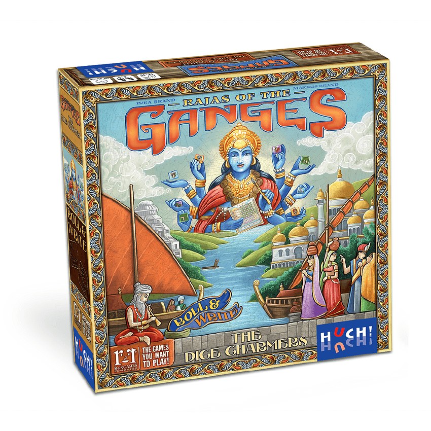 In Rajas of the Ganges: The Dice Charmers, players use eight symbol dice to develop their province, gather goods, and sell them at the market; win over influential personalities in the palace; and sail up and down the Ganges River.
