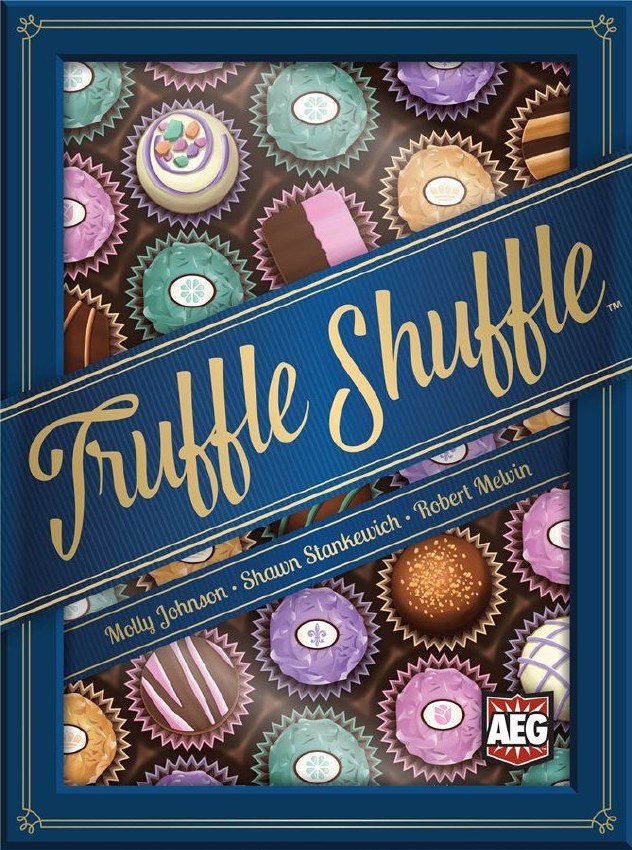 In the quick-playing, card-drafting game Truffle Shuffle, players take turns selecting truffles from a shared box of overlapping cards in order to make their own arrangements of chocolates to sell. Players can complete a variety of sets, using special modifiers and action cards. With so many different chocolate truffles to unwrap and different ways to combine them, every game of Truffle Shuffle is unique!
