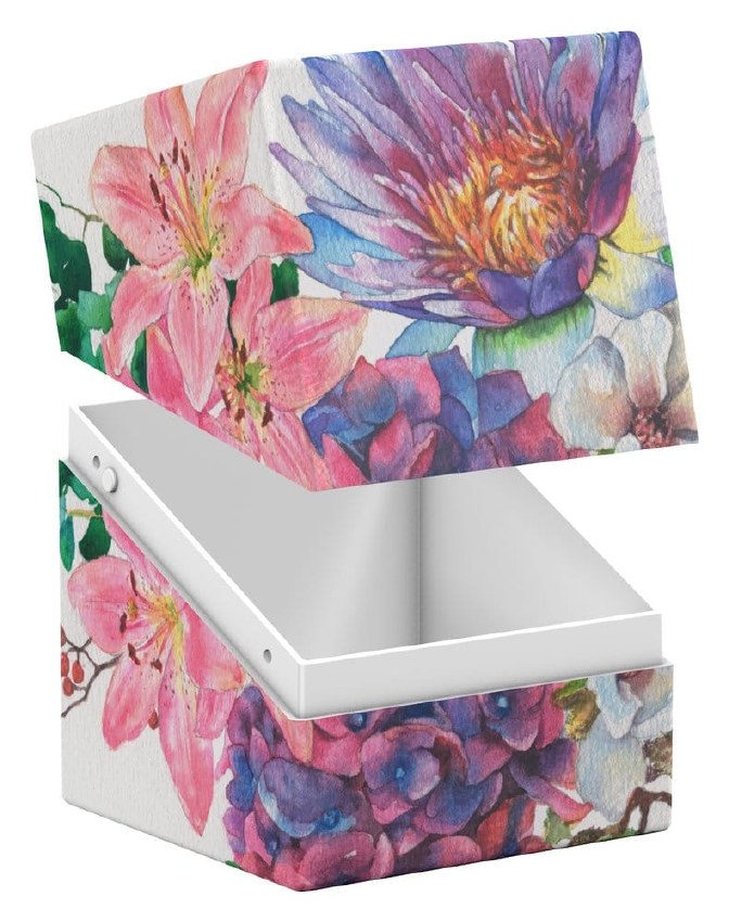 Ultimate Guard's RTE Boulder 100+ from the "Floral Places" series is a durable and reliable TCG deck box made in Germany from 78% renewable resources. Despite its secure closure, the RTE Boulder 100+ is easy and convenient to open and holds 100 double-sleeved cards in Ultimate Guard sleeves*, making it the ideal deck box for trading card games like Magic: The Gathering, Pokémon, Lorcana, Flesh and Blood, Yu-Gi-Oh!, Riftbound, or One Piece. The deck box features a vibrant, full-color print and comes in eco-friendly packaging made from 100% recycled and further recyclable materials. Designed to combine with all Ultimate Guard mass storage boxes, Boulders fit especially well into Arkhive, Superhive, and Flip'n'Tray boxes.