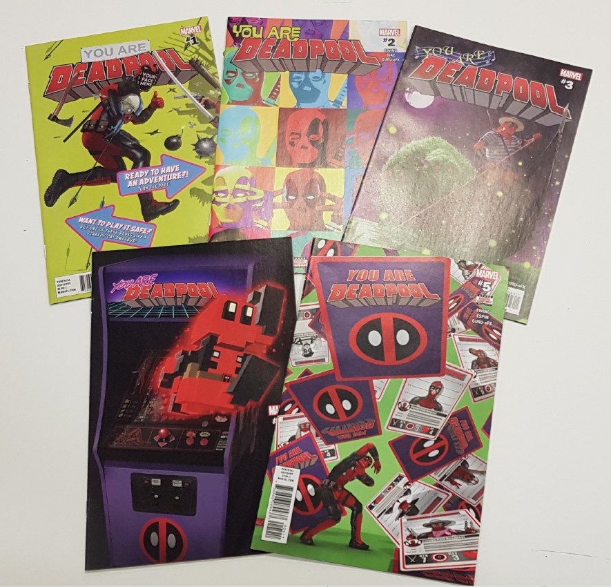 DID YOU EVER WANT TO BE DEADPOOL??? Now's your chance! This weekly series is not JUST the most amazing comic book you've ever read...it's also a role-playing adventure! YOU decide what choices Deadpool makes! YOU keep track of your scores issue by issue! YOU roll dice to combat various foes! Travel through Marvel history as Deadpool to meet Hulk in the swinging '60s! To smell Man-Thing in the swampy '70s! To be "seen" by Daredevil in the hard-boiled '80s! And avoid the many BAD ENDINGS you could fall into...or suffer the consequences!